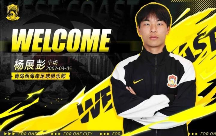 欢迎杨展彭加入青岛西海岸队!期待杨展彭尽快融入团队,与球队同心致远,共绘青岛足球崭新蓝图!